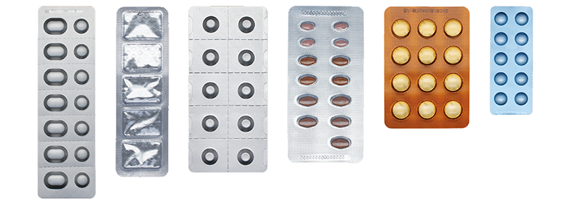 | 卷型包装材料 | PVC/PVDC/PET/PE/ACLAK | 单面涂胶铝箔(PTP)背封材料 |